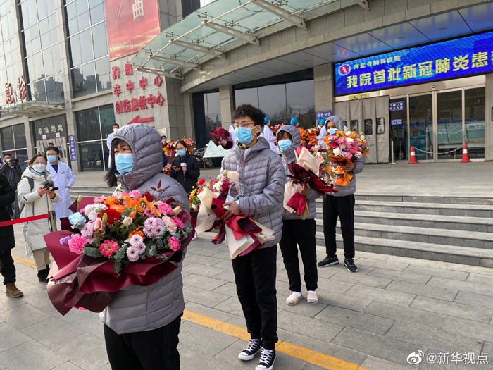 1月14日下午,河北省胸科医院首批12名新冠肺炎确诊患者治愈出院,18名无症状感染者解除集中医学观察,均转入康复阶段。13时许,出院患者分批有序走出隔离病房,收到了工作人员送上的鲜花和祝福。所有出院患者均符合《新型冠状病毒肺炎诊疗方案(试行第八版)》规定的出院标准,经国家、省专家审核后出院。