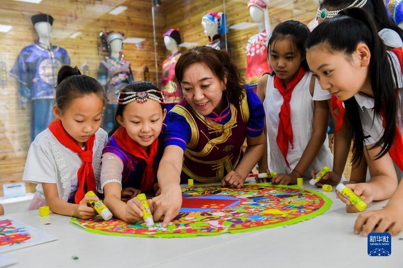 这是2019年7月15日拍摄的赤峰市松山区兴安街道临潢家园社区的民族融合小课桌。新华社记者 刘磊 摄