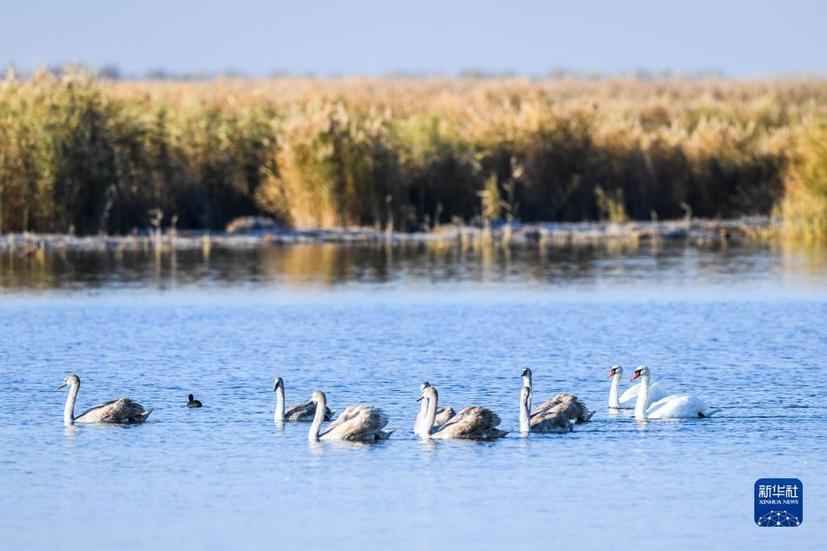这是2019年10月25日在乌梁素海拍摄的候鸟。新华社记者刘磊 摄
