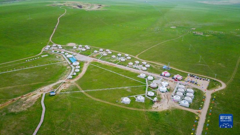 这是内蒙古锡林郭勒盟宝力根苏木的一处那达慕会场(2017年7月21日摄,无人机照片)。新华社记者 连振 摄