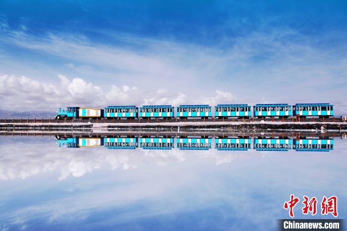 图为茶卡盐湖上行驶的小火车。(资料图) 王生荣 摄