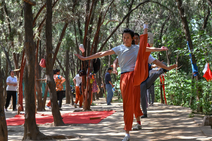 5月31日,健身爱好者在济南英雄山风景区内锻炼。新华社记者朱峥摄