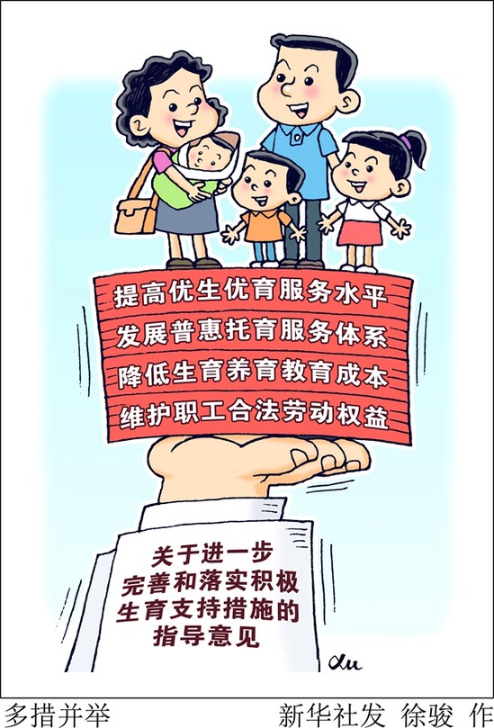 国家卫生健康委、国家发展改革委等17部门印发的《关于进一步完善和落实积极生育支持措施的指导意见》16日公布,推动一对夫妻可以生育三个子女政策的深入实施。指导意见将婚嫁、生育、养育、教育一体考虑,通过财政、税收、保险、教育、住房、就业等相关领域的政策,加快建立积极生育支持政策体系,为推动实现适度生育水平、促进人口长期均衡发展提供有力支撑。