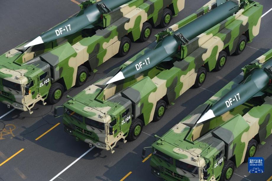 2019年10月1日上午,庆祝中华人民共和国成立70周年大会在北京天安门广场隆重举行。这是东风-17常规导弹方队。新华社记者潘昱龙 摄