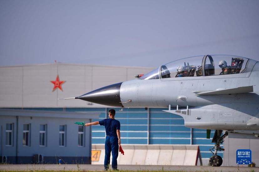 在空军石家庄飞行学院某旅机场,空军首批三代机飞行学员驾驶首批列装空军院校的歼-10战机准备起飞(2021年9月10日摄)。新华社发(李敏摄)