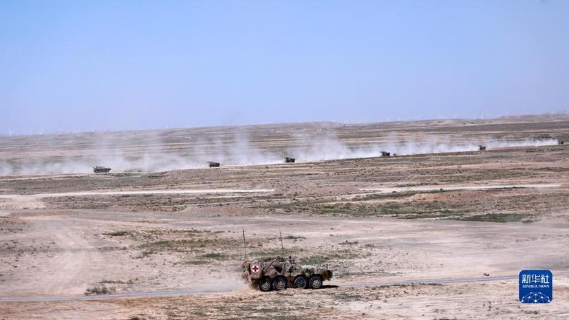在“西部·联合-2021”演习第一次实兵实装实弹合练中,野战救护力量为联合任务部队提供保障(2021年8月5日摄)。新华社记者刘芳 摄