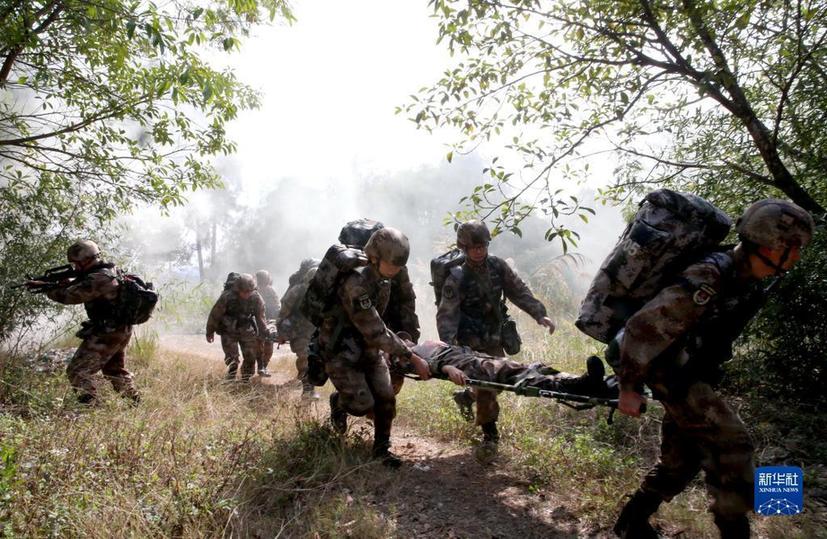 无锡联勤保障中心第910医院将野战医疗队拉到闽南某山区,在陌生地域开展实战化卫勤训练(2022年1月4日摄)。新华社发(巴涛摄)