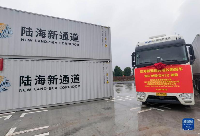 这是陆海新通道跨境公路班车(2022年7月2日摄)。新华社发(张云龙 摄)