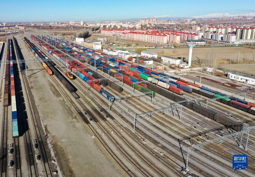 这是新疆霍尔果斯铁路口岸(2022年3月31日摄,无人机照片)。新华社发(吴志恒 摄)
