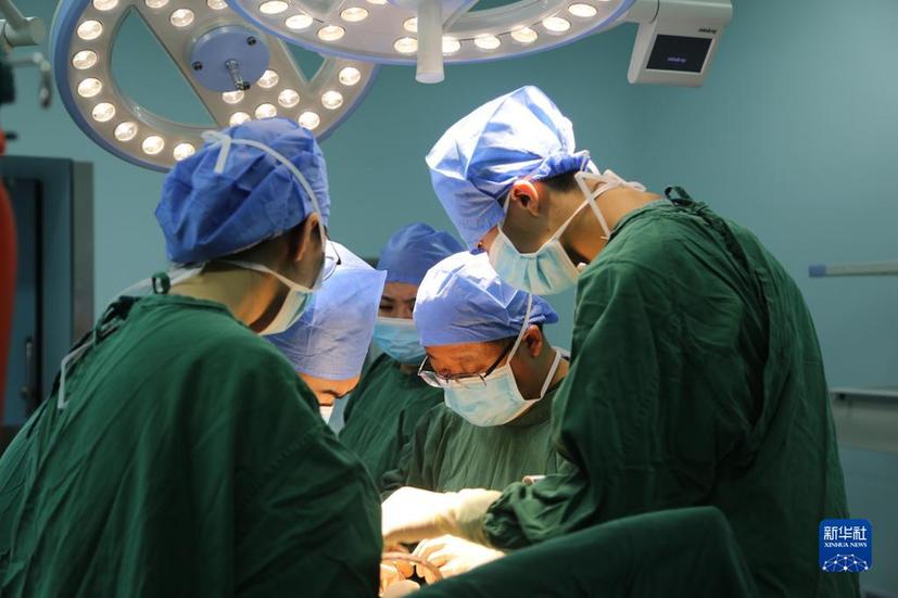 在甘肃省定西市人民医院手术室,医生在做手术(2022年9月10日摄)。新华社发(王克贤 摄)