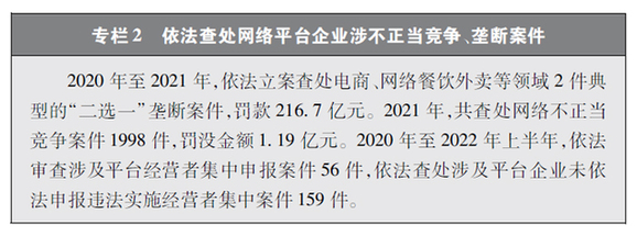 保障公平竞争的网络市场环境。随着网络平台企业不断扩展自身的体量和实力,“掐尖式并购”、无正当理由屏蔽链接、“二选一”、大数据杀熟、流量挟持等妨碍市场公平竞争的问题也逐渐凸显。中国积极回应人民群众诉求,在支持网络平台企业创新发展的同时,依法规范和引导资本健康发展,采取多种治理平台竞争失序的执法举措。聚焦大型网络平台价格欺诈、低价倾销等重点问题,通过行政约谈、行政指导、规则指引等多种监管手段,整治垄断和不正当竞争行为。围绕民生、金融、科技、传媒等重点行业,依法审查涉及平台经营者集中案件,防止可能妨碍市场竞争和创新发展的并购行为,引导网络平台企业增强合规意识,规范自身经营行为。通过一系列行动,平台经济市场环境不断优化,公平竞争的行业生态稳步向好,中小企业获得更广阔的发展空间,统一、开放、公平、竞争、有序的网络竞争环境正在形成。