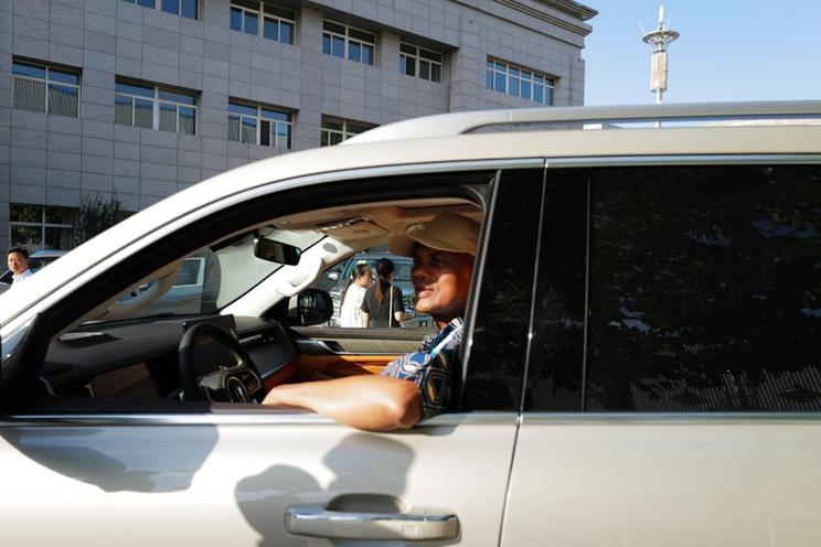 科摩罗驻华大使在长城汽车徐水整车制造基地内试乘汽车。新华社记者邵艺博 摄