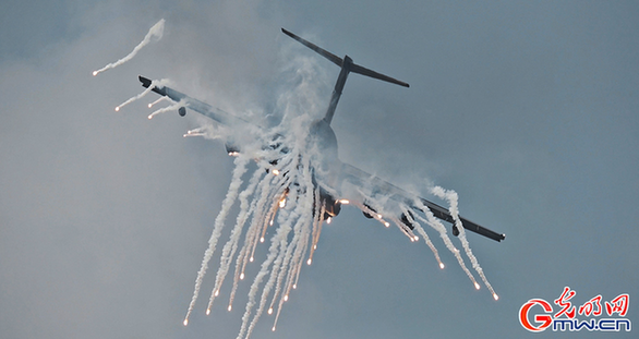 图为运油-20释放干扰弹。(光明网记者李伯玺/摄)