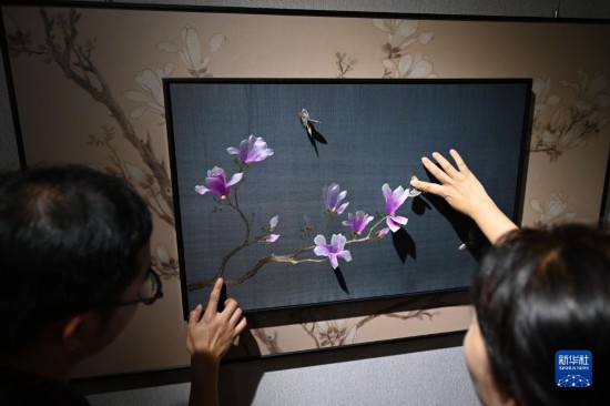 8月14日,观众与展出的苏绣互动。新华社记者 金良快 摄