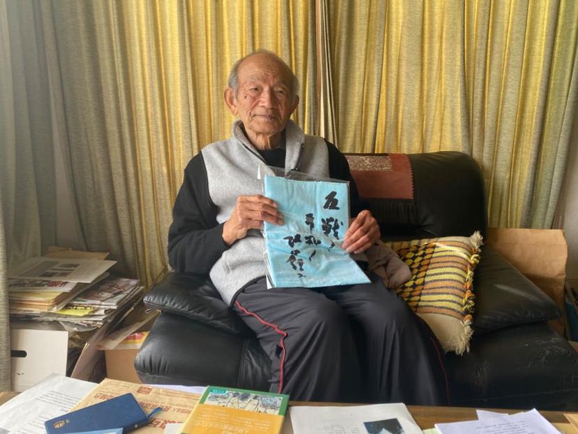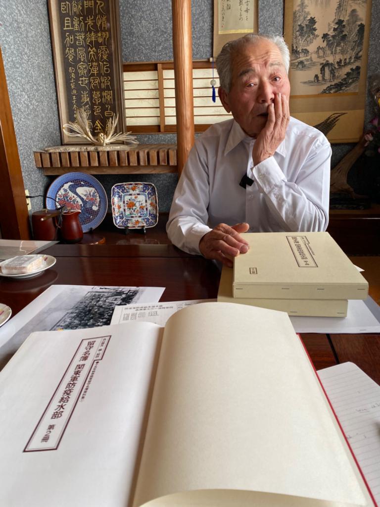 1月13日,在日本长野县饭田市,原“为了和平的信州战争展实行委员会”会长及“饭田市和平资料收集委员会”会长久保田昇在家中接受采访。新华社记者郭丹摄