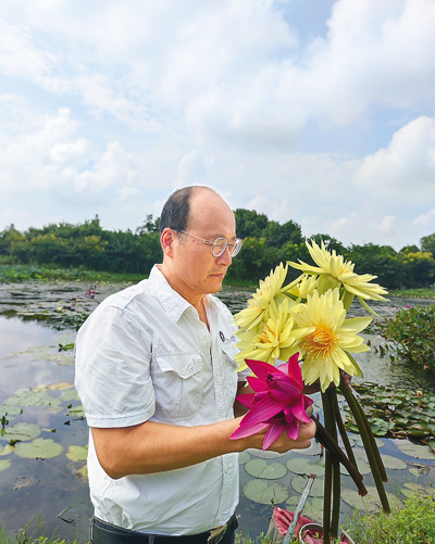 “今年莲花长势很好,每片花瓣都非常饱满。塘里已有近一半莲花被商家收购。从6月以来一直有客人组团来体验采摘活动。可受欢迎了!”62岁的农场主许松林来自台湾,谈及生态农业发展,他神采奕奕。