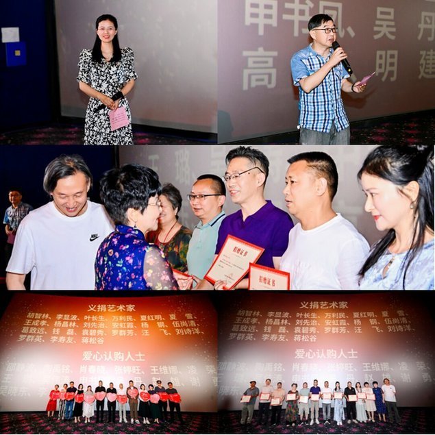 民盟省直工委秘书长张秀玲和民盟省直工委文化总支盟员、演员田长青宣读了义捐书画作品艺术家和爱心认购人员名单。原省政协文史委副主任、武侯祠博物馆馆长、四川省传统文化促进会会长、锦里创始人张丽君,四川民盟书画院副院长江溶为义捐艺术家颁发了荣誉证书,以此表彰他们为本次活动所做出的贡献。