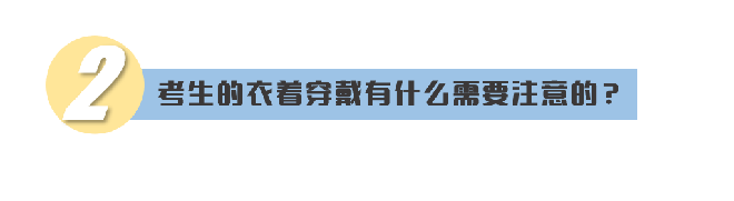 考生的衣着要符合当地招生考试机构的相关要求,建议不佩戴含有金属成分的手镯、项链、发夹等佩饰物品。同时,应根据当地的天气状况,注意增减衣物。