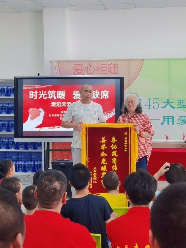 活动现场,她郑重展开一面特制锦旗,红底金字熠熠生辉——“拳协筑角传拳意,善举如光暖康途”,十四字道尽谢意后,将锦旗赠予中国拳击协会,由中国拳击协会副秘书长于川接过锦旗,并为孩子们送上祝福:“希望通过康复中心,通过社会的力量,更加关注这一群体,也希望他们能做一个最好的自己,在这里感到幸福”。