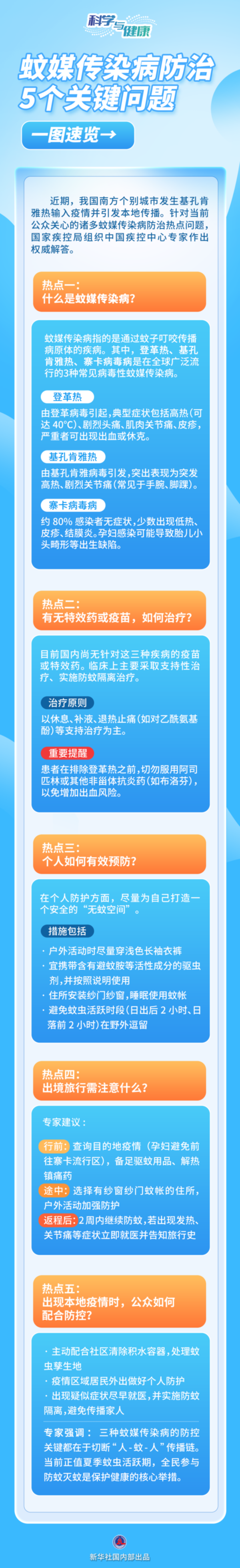 近期,我国南方个别城市发生基孔肯雅热输入疫情并引发本地传播。针对当前公众关心的诸多蚊媒传染病防治热点问题,国家疾控局组织中国疾控中心专家作出权威解答。