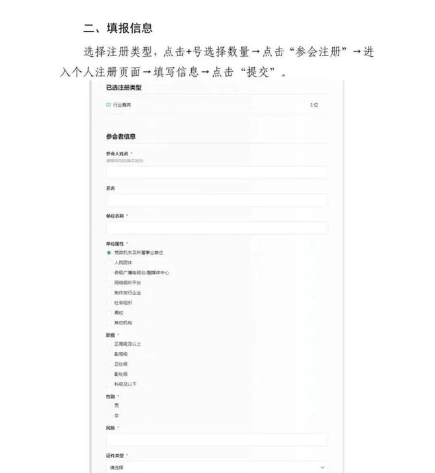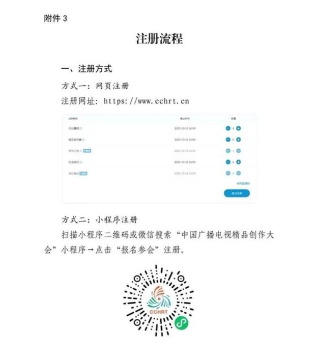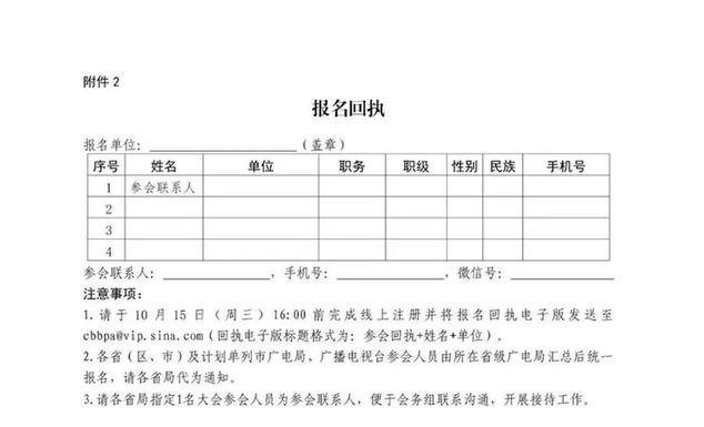 各单位请于10月15日(周三)16:00前完成报名和线上注册。各省(区、市)及计划单列市广电局、台参会人员,由所在省级广电局汇总后统一报名,请各省局代为通知,并报一名参会联系人。