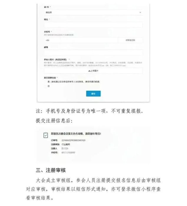 线上注册请如实填写个人信息(注册流程详见附件3)。如注册后需变更参会人员,请及时通知会务组联系人,并完成相关回执填报和信息注册等事项。